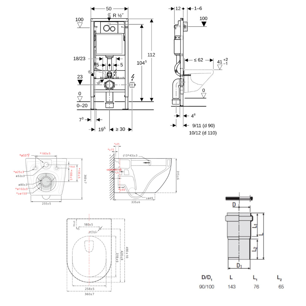 Ces bâti-supports pour WC suspendus ne peuvent être installés contre des cloisons en plaques de plâtre à âme alvéolaire en carton, contre des cloisons en plaques de plâtre sur ossature métallique ou contre des cloisons de séparation double peau en plaques de plâtre sur ossature métallique sans accessoirisation additionnelle (substitution des pieds fournis par des pieds autoportants) ou l'ajout de renforts complémentaires (à intégrer au préalable dans la cloison au niveau des fixations hautes).
