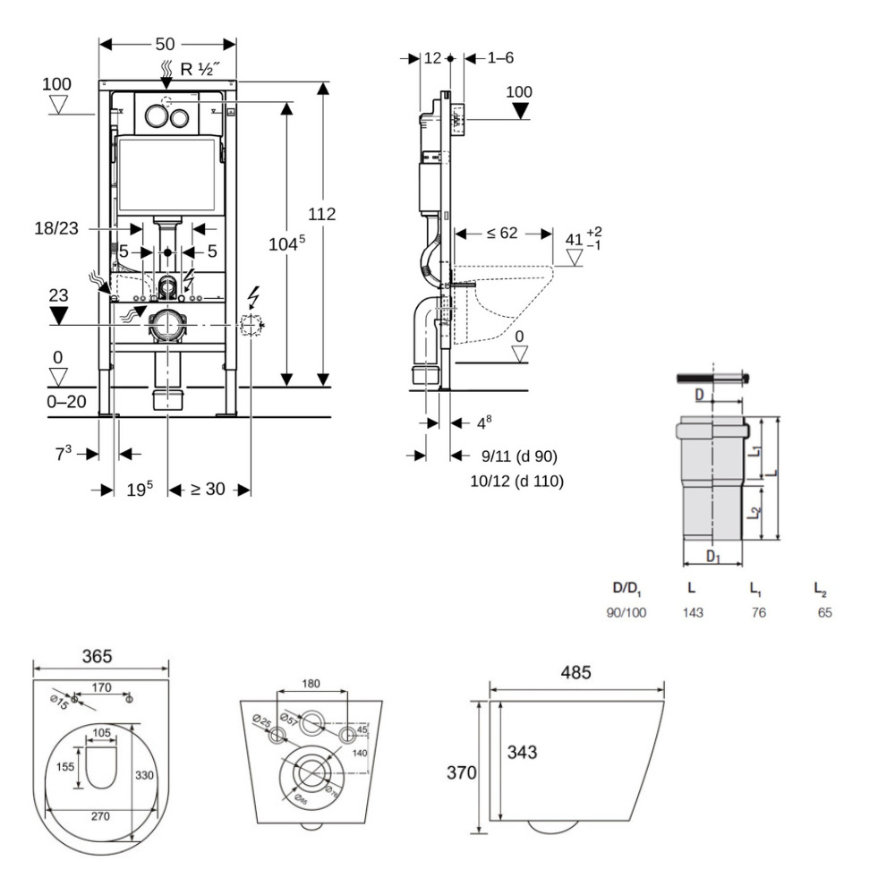 - Redi Manchon de raccordement Ø 90/100 MM pour Rapid SL ou Geberit (VS0564190)
