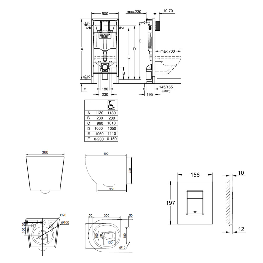 - Grohe SOLIDO Bâti-support autoportant pour WC, 1,13 M (39981000)