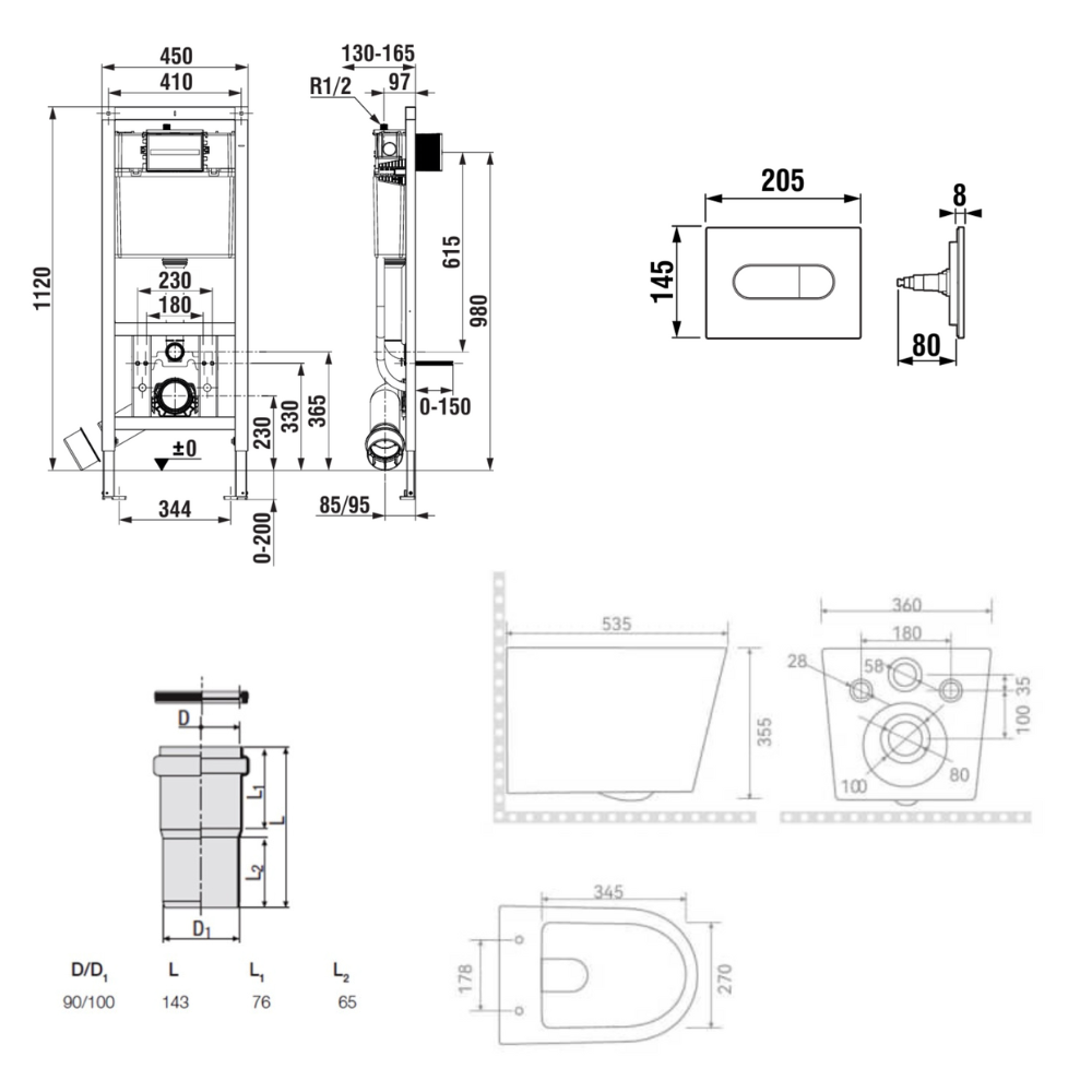 Bâti-support encastrable pour WC suspendu, installation sur cloison légère, hauteur 112 cm, chasse 2/4-6 L (A8900200Z0) :