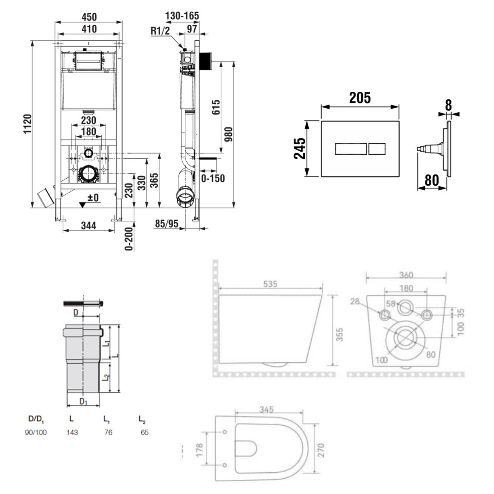 • Type de produit : ensemble WC suspendu sans bride + abattant SoftClose