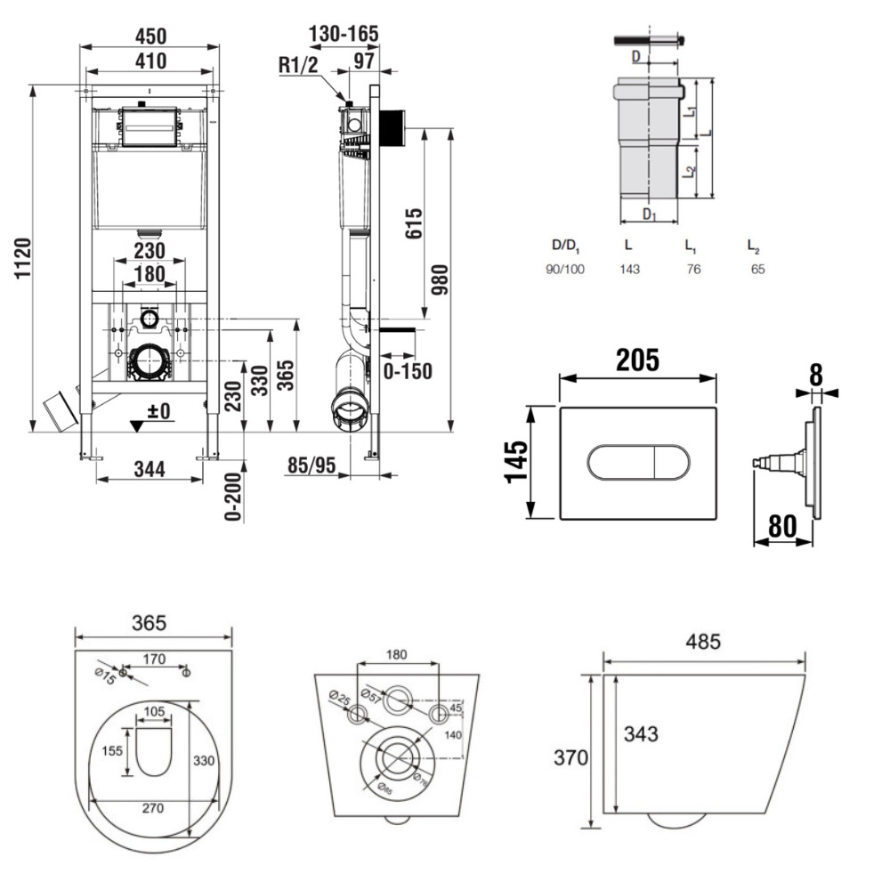 Bâti-support encastrable pour WC suspendu, installation sur cloison légère, hauteur 112 cm, chasse 2/4-6 L (A8900200Z0) :