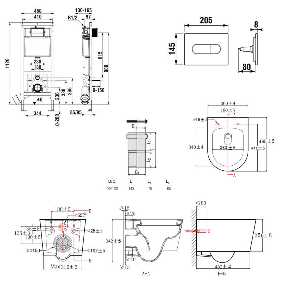 Bâti-support encastrable pour WC suspendu, installation sur cloison légère, hauteur 112 cm, chasse 2/4-6 L (A8900200Z0) :