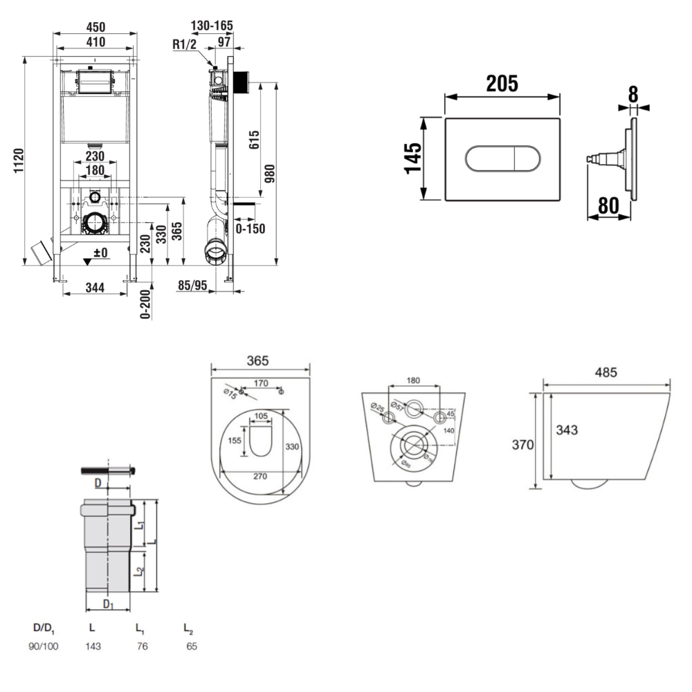 Bâti-support encastrable pour WC suspendu, installation sur cloison légère, hauteur 112 cm, chasse 2/4-6 L (A8900200Z0) :