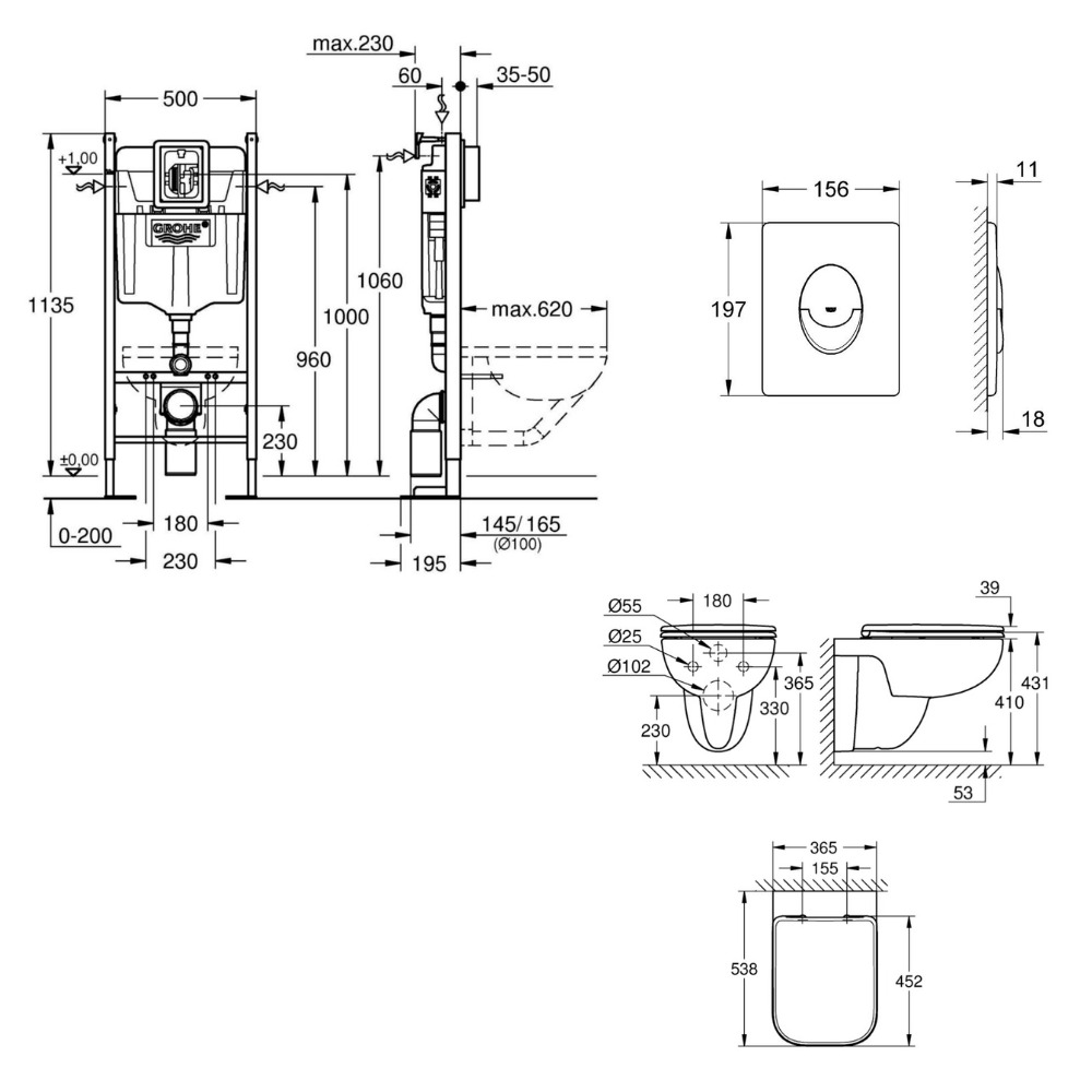 - Grohe RAPID SL Project bâti support autoportant pour WC, 1.13 M (39145000)