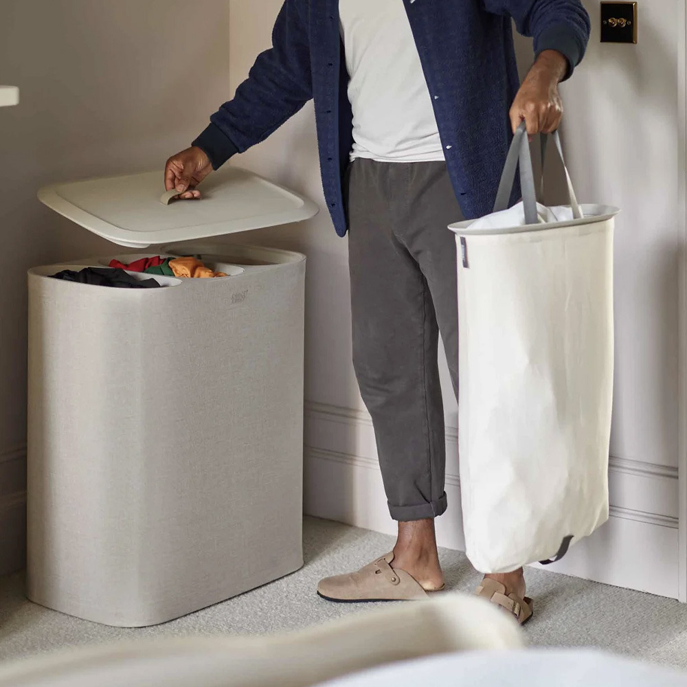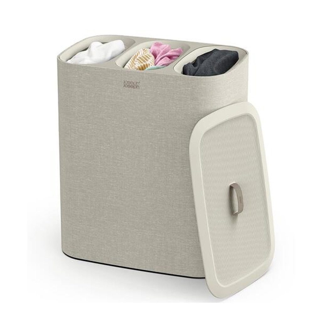 Joseph Joseph Panier à linge TOTA TRIO, en tissu, avec 3 compartiments de 30 litres, facile à vider et à entretenir. Ecru (50021)