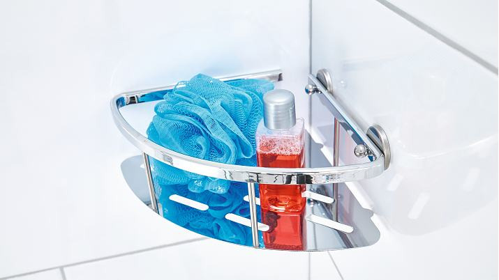 - Panier de douche d'angle avec socle et technologie tesa® Power.Kit brevetée (solution de fixation complète)