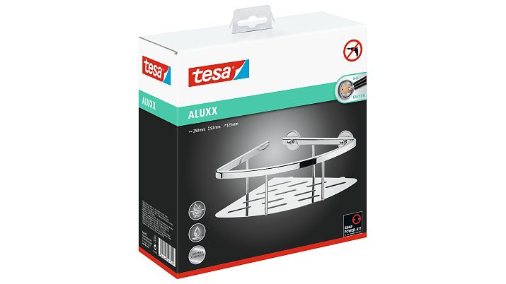 Caractéristiques du Panier d'angle avec plateau en aluminium chromé inoxydable, pose facile sans perçage, Tesa Aluxx (40203-00000-00) :
