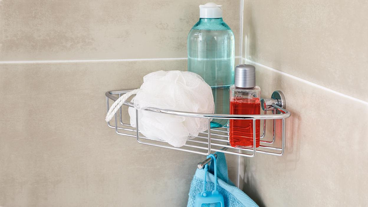 - Panier de douche d'angle avec technologie brevetée tesa® Power.Kit (solution de fixation complète)