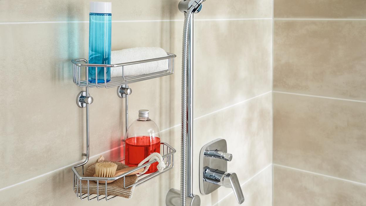 Il est bon d'avoir des gels douche et des shampooings au même endroit lorsque vous êtes sous la douche. Avec l'étagère 2 paniers tesa® Draad, non seulement vous obtenez un bel aspect hexagonal, mais vous pouvez le monter où vous voulez, grâce à la colle utilisée. L'absence de perçage permet de préserver les murs et les carrelages. La colle doit durcir pendant 12 heures. L'étagère 2 paniers peut être retirée à votre guise sans laisser de traces. Elle peut être également facilement réinstallé ailleurs avec un nouvel adaptateur BK43-2.