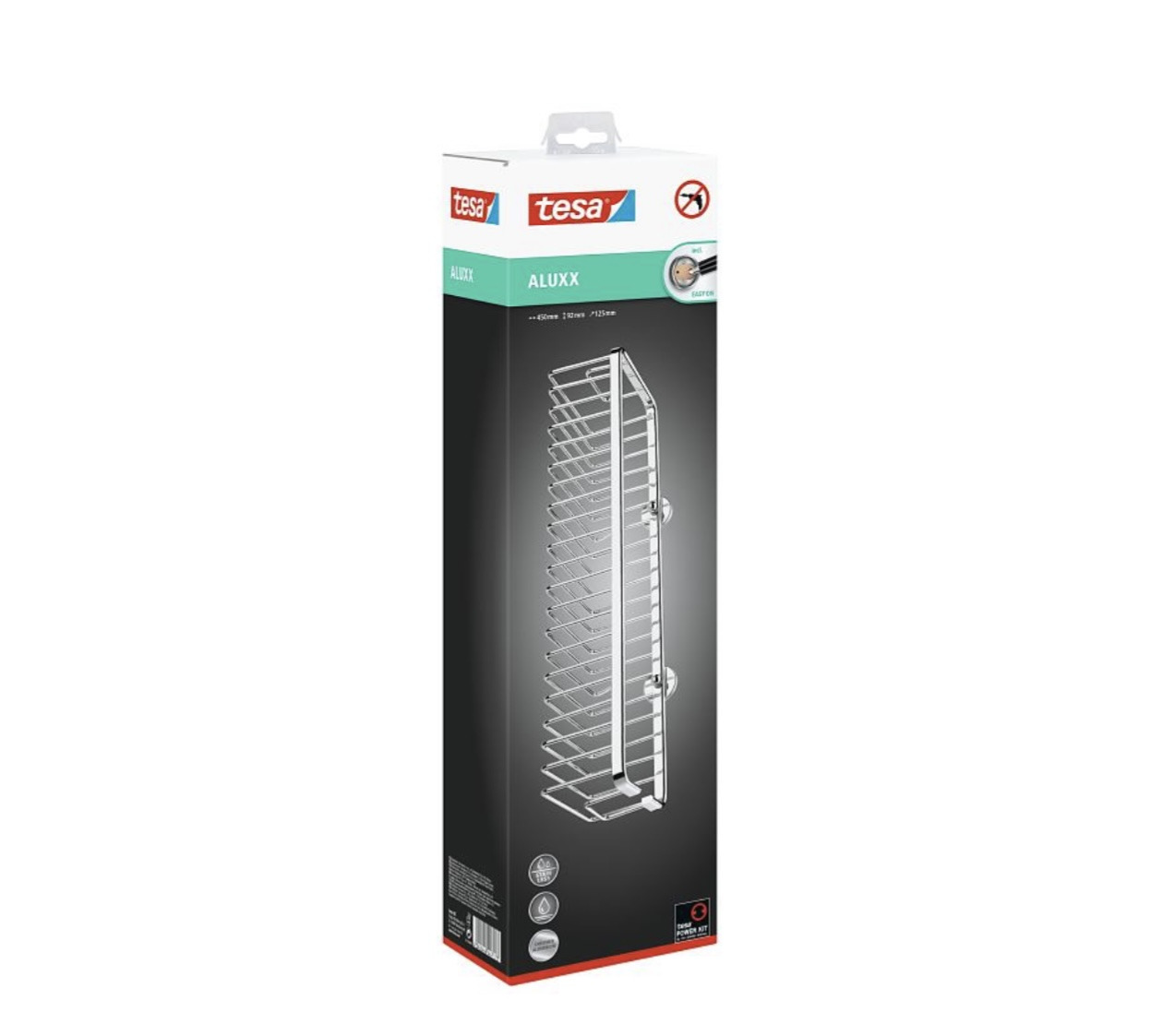 - Panier de douche avec technologie tesa® Power.Kit brevetée (solution de fixation complète)