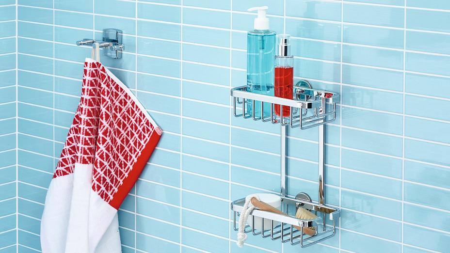 - Étagère de douche avec technologie tesa® Power.Kit brevetée (solution de fixation complète)
