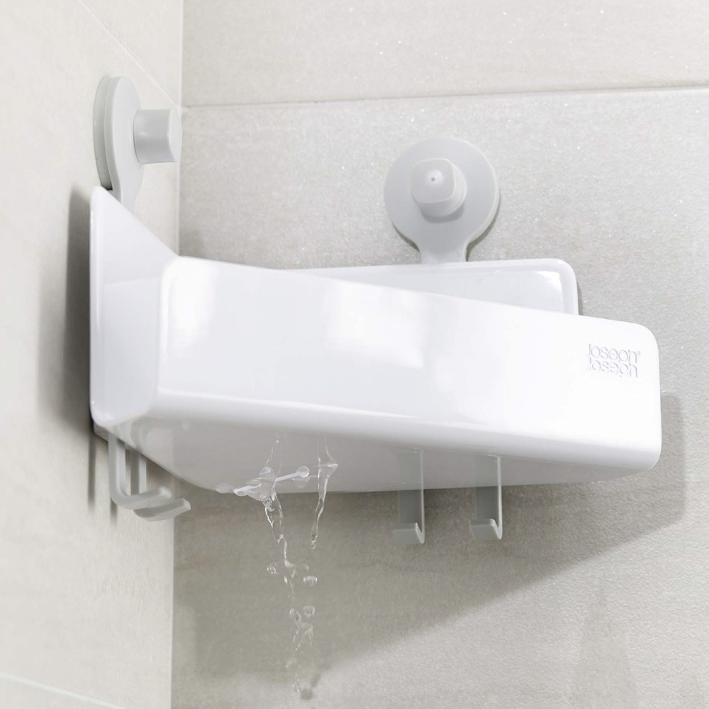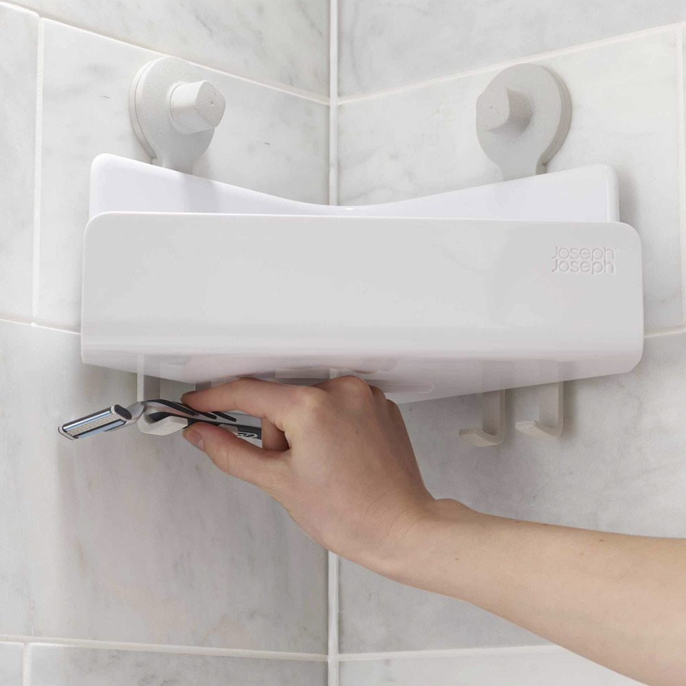 Joseph Joseph EasyStore™ Étagère de douche d'angle avec miroir amovible et incassable, blanc (70549)