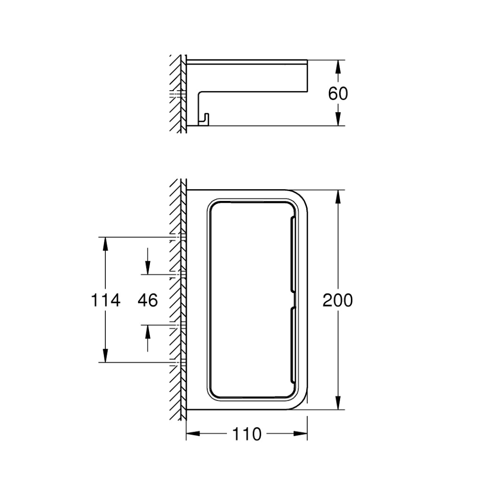 - Peut être vissé au mur (vis et cheville incluses) ou collé (Colle GROHE QuickGlue référence : A2 41 128 000 vendue séparément)