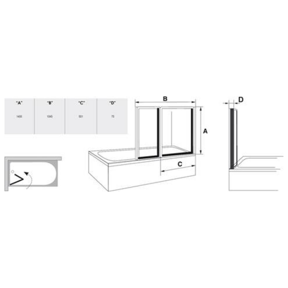Caractéristiques du Pare-baignoire pliable, 2 parties, 140x105, Blanc, Ravak Supernova (VS2105R0) :