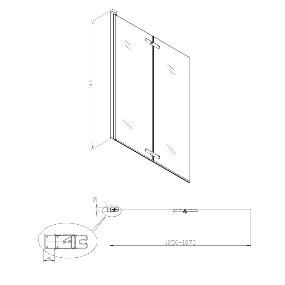 Caractéristiques du pare-baignoire en verre 150x105 cm 2 volets pliants, Swiss Aqua Technologies SK, orientation gauche et droite, noir (SATVZSKNEW105C) :