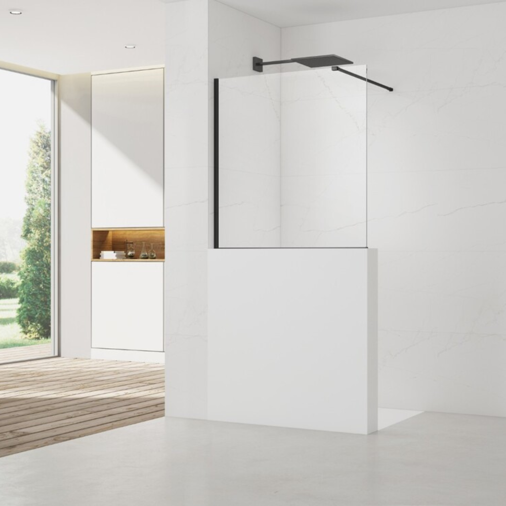 Swiss Aqua Technologies Pare-muret 100x90cm Paroi en verre Crystal Glass® 8 mm anticalcaire, avec bras et profilés noir mat (SATBWIS90PRC)