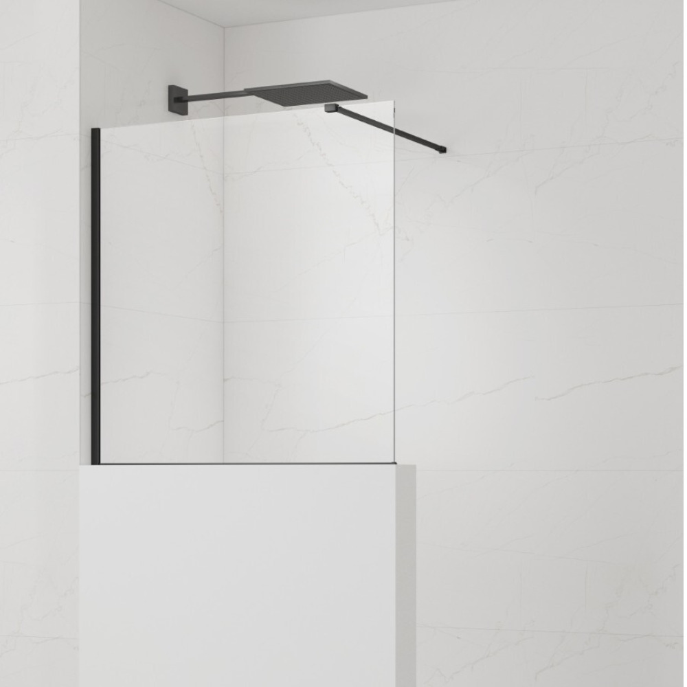 Pare-muret 100x100cm Paroi en verre Crystal Glass® 8 mm anticalcaire, avec bras et profilés noir mat (SATBWIS100PRC)