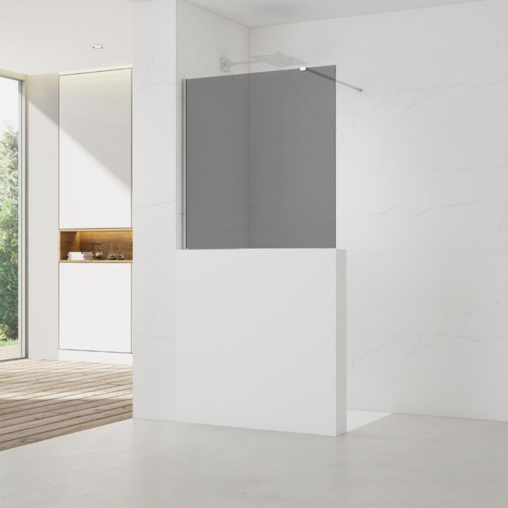 Walk-in 100x90 cm paroi de douche fixe à l'italienne, verre fumé Easy Clean, pour cloison abaissée (SATWIS90KS) :