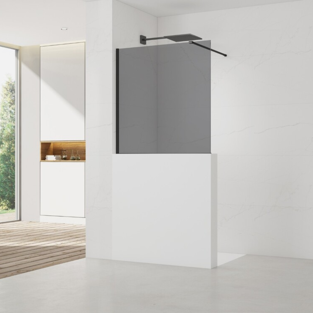 110x100 cm Walk-In paroi de douche fixe à l'italienne, verre fumé Easy Clean, pour cloison abaissée (SATWIS110KS) :