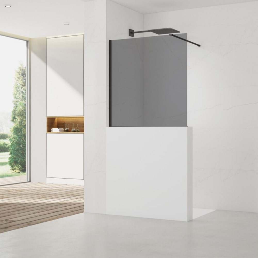 Swiss Aqua Technologies Walk-In 100x100cm paroi de douche fixe à l'italienne, verre fumé Easy Clean, pour cloison abaissée (SATWIS100KS)