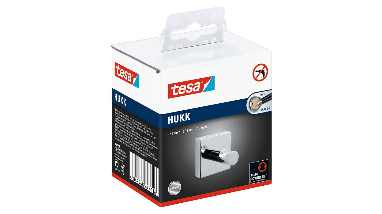 Caractéristiques du crochet porte-serviette, métal chromé, pose facile sans perçage, Tesa Hukk (40250-00000-00) :
