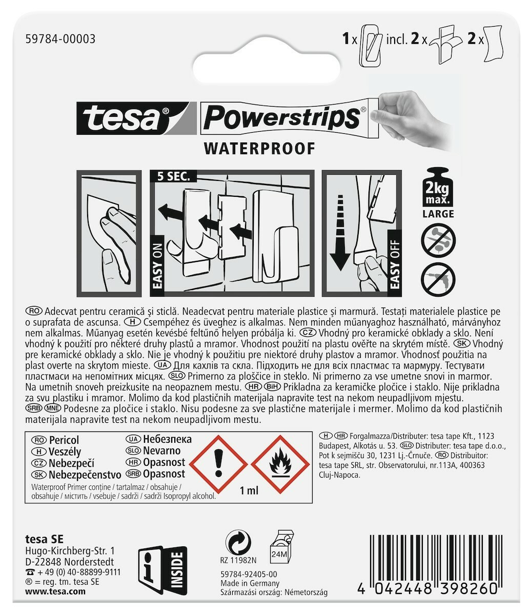 - Se retire sans laisser de trace grâce à la technologie unique des Powerstrips® Waterproof