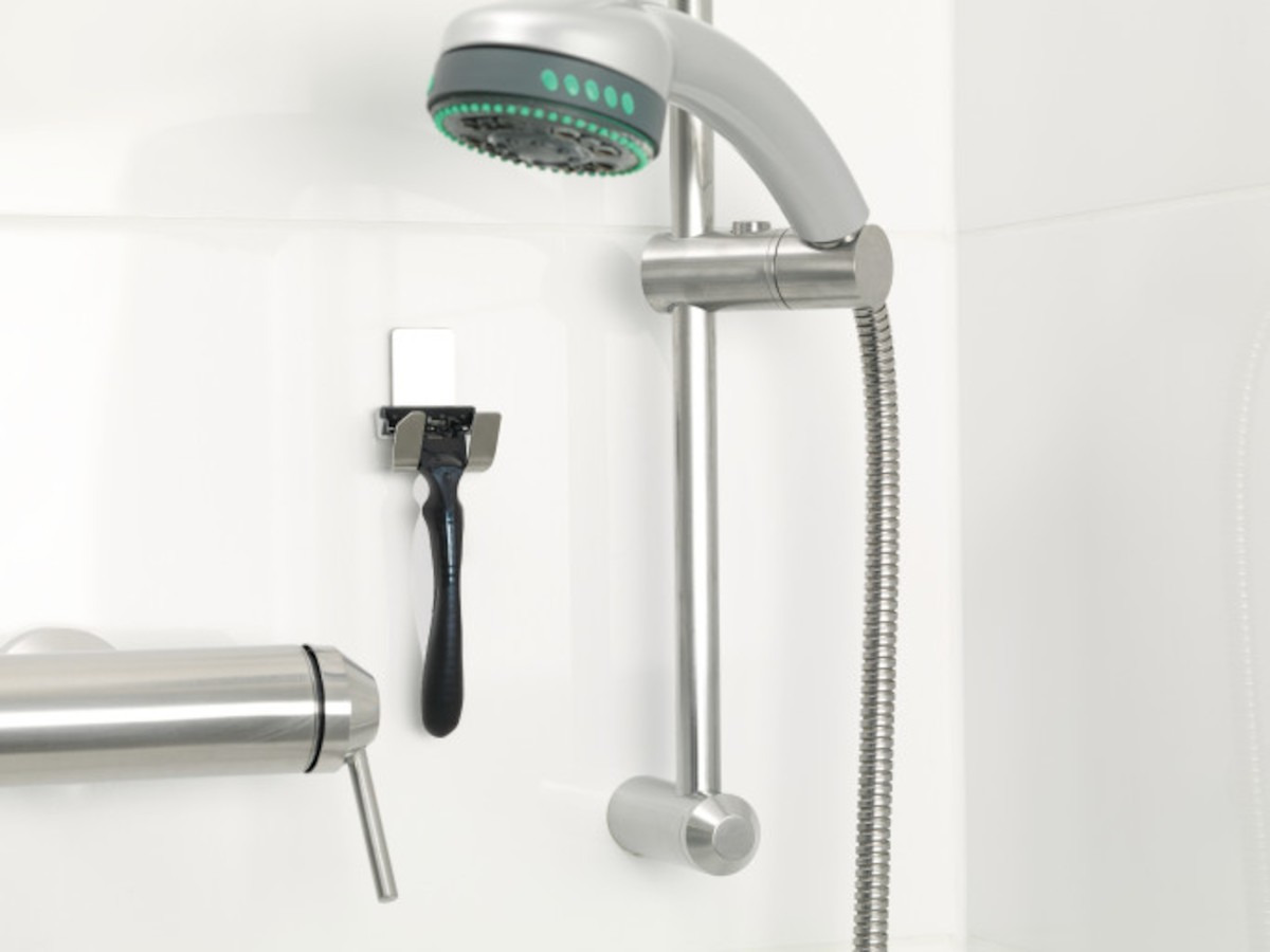 Le porte-rasoir étanche de haute qualité en acier inoxydable peut contenir presque tous les types de lames de rasage pour femmes et hommes. Il convient aux environnements humides, comme les douches et les baignoires. Grâce à la technologie brevetée Tesa Powerstrips il assure un maintien fiable jusqu'à 2 kg. Pour le fixer, il ne faut ni percer, ni abîmer le mur. Il vous suffit de coller simplement le crochet sur la surface. De plus, vous pouvez l'enlever à tout moment sans laisser de trace. Adoptez-le donc et placez-le très facilement.