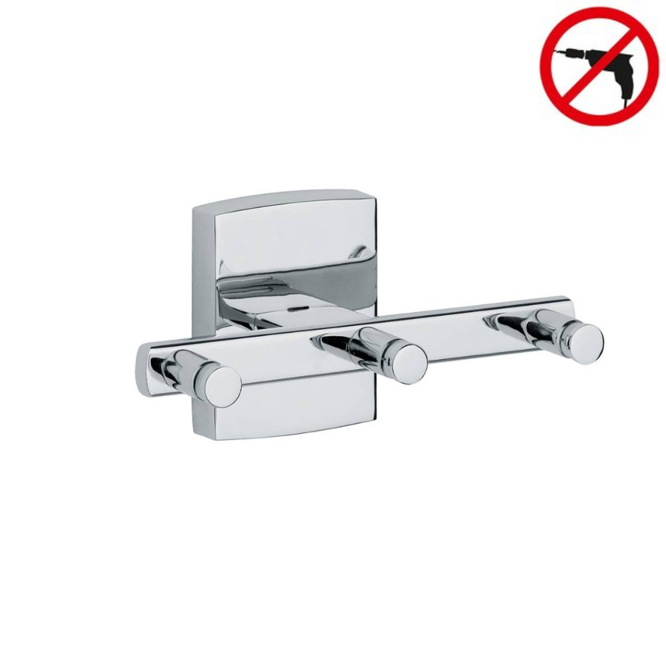 Caractéristiques du Crochet 3 têtes porte-serviette 6x12x5,5cm, Métal, Chrome, pose facile sans perçage, Tesa Klaam (40262-00000-00) :
