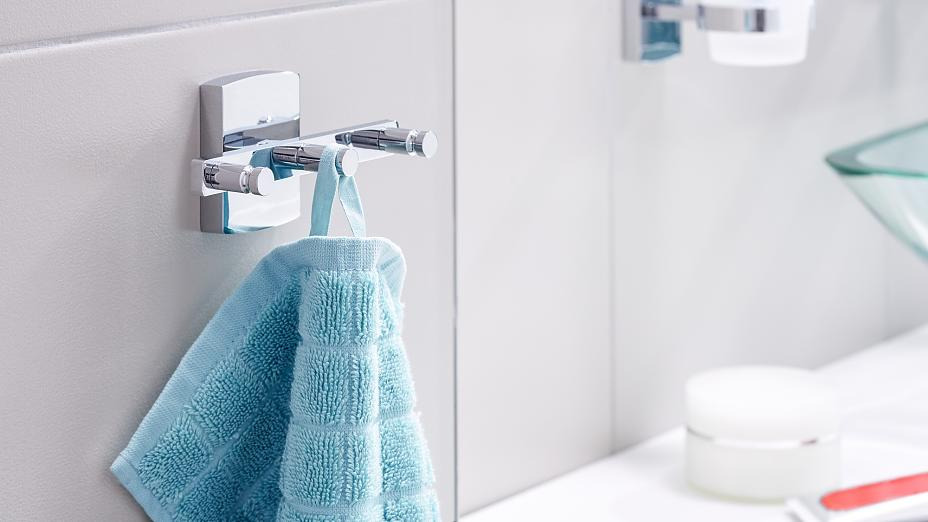 Les crochets salle de bain tesa® Klaam permettent de suspendre trois serviettes et décorent joliment votre salle de bain. Un accessoire élégant avec une finition chromée brillante. La colle doit durcir pendant 12 heures pour une efficacité optimale. Aucun perçage requis, vos murs et carrelages sont intacts. Cet accessoire peut être retiré à tout moment sans laisser de traces.