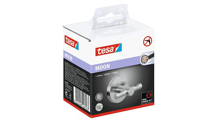 Tesa Moon Double crochet porte-serviette, Acier inoxydable mat, pose facile sans perçage (40305-00000-00)