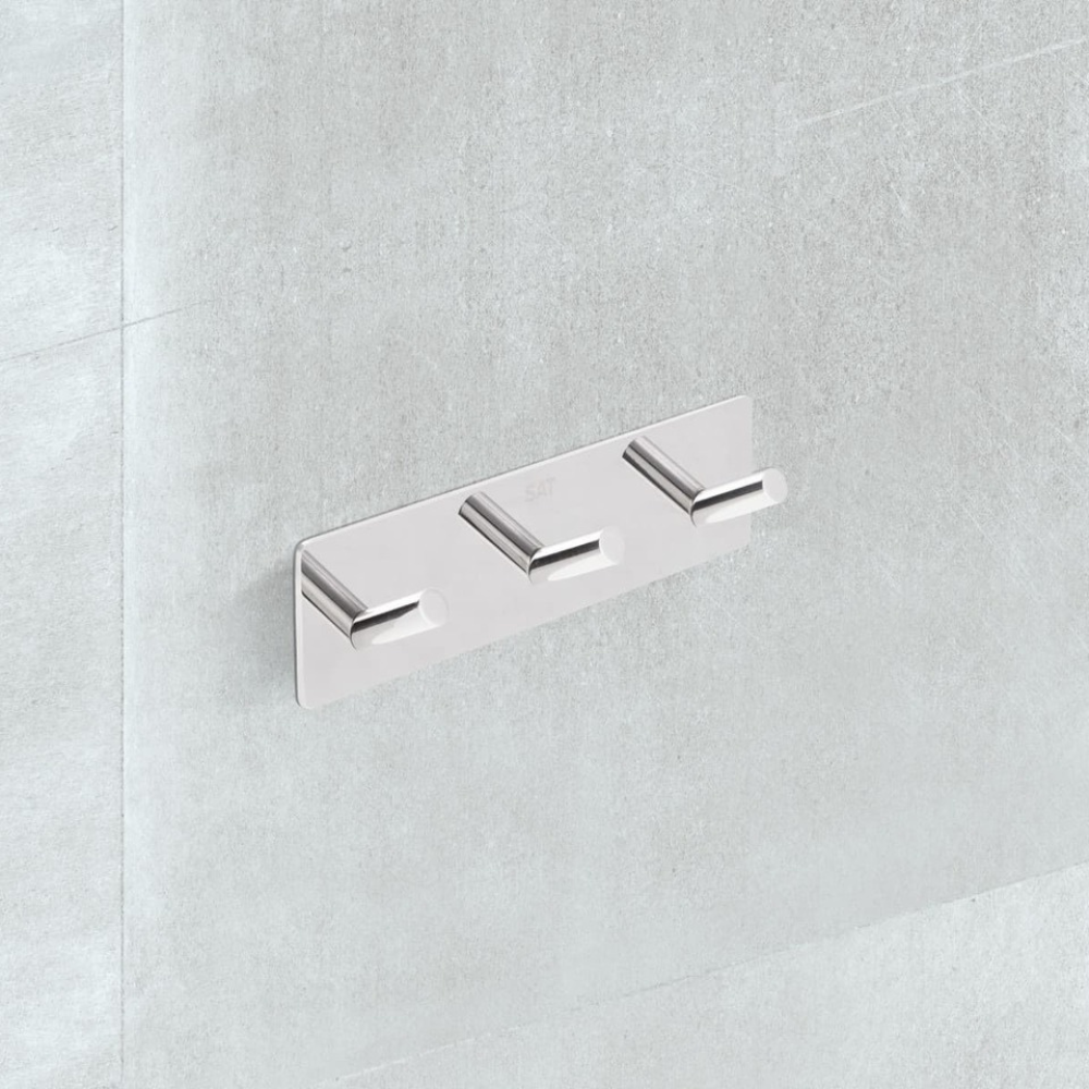 Swiss Aqua Technologies Patère murale adhésive triple crochets en acier inoxydable, chrome brillant (HACEKNALEP3H)