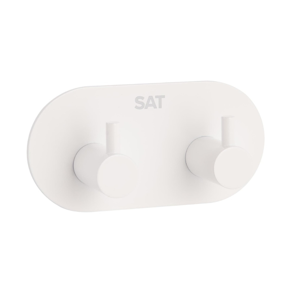 Swiss Aqua Technologies Patère murale adhésive double crochets en acier inoxydable, blanc mat (HACEKNALEP2KB)