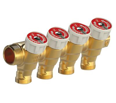 Giacomini Collecteur avec robinets d'arrêt 4 sorties nourrice mâle - femelle 3/4, 1/2 entraxe 35 mm (R585CY374)