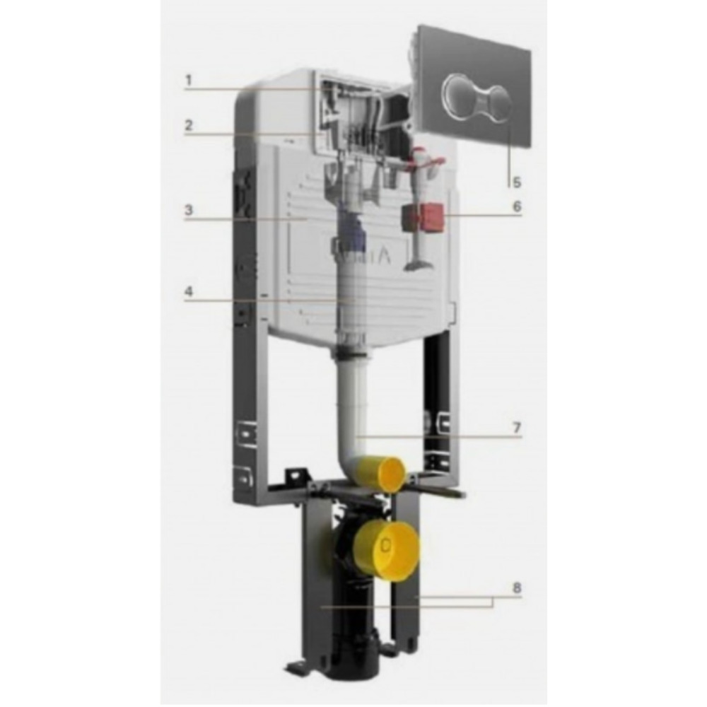 Caractéristiques du mécanisme de chasse d'eau double touche pour WC encastré Vitra V-FIX et Vitrus (436868YP) :