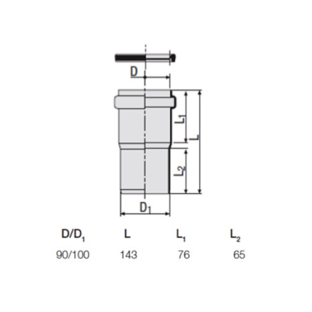PVC standard de 100mm à une extrémité, accepte Rapid SL de 90mm à l'autre extrémité. 100mm mâle / 90mm femelle. (commentaire Avis Vérifiés)