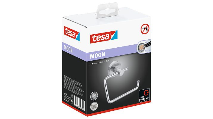 Avec son design rond minimaliste, le porte rouleau WC adhésif tesa® Moon attirera tous les regards dans votre salle de bain. Son look inoxydable et anti-traces de doigts s'accorde parfaitement avec toutes les salles de bain. Le dérouleur de papier toilette est fixé avec de la colle au lieu de percer. Ainsi, vos murs et carrelages ne sont pas endommagés.