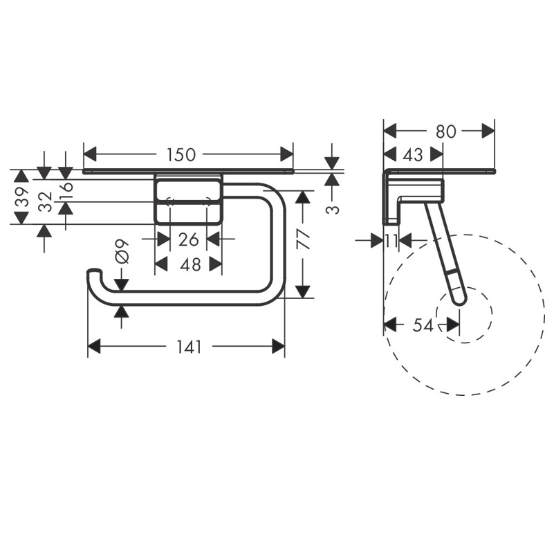 Caractéristiques de AddStoris Porte-papier WC mural avec tablette, Noir mat, Hansgrohe AddStoris (41772670) :