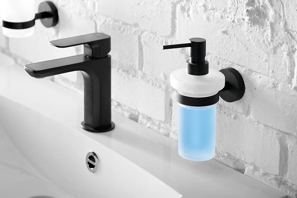 Détail du distributeur de savon liquide mural Bemeta DARK :