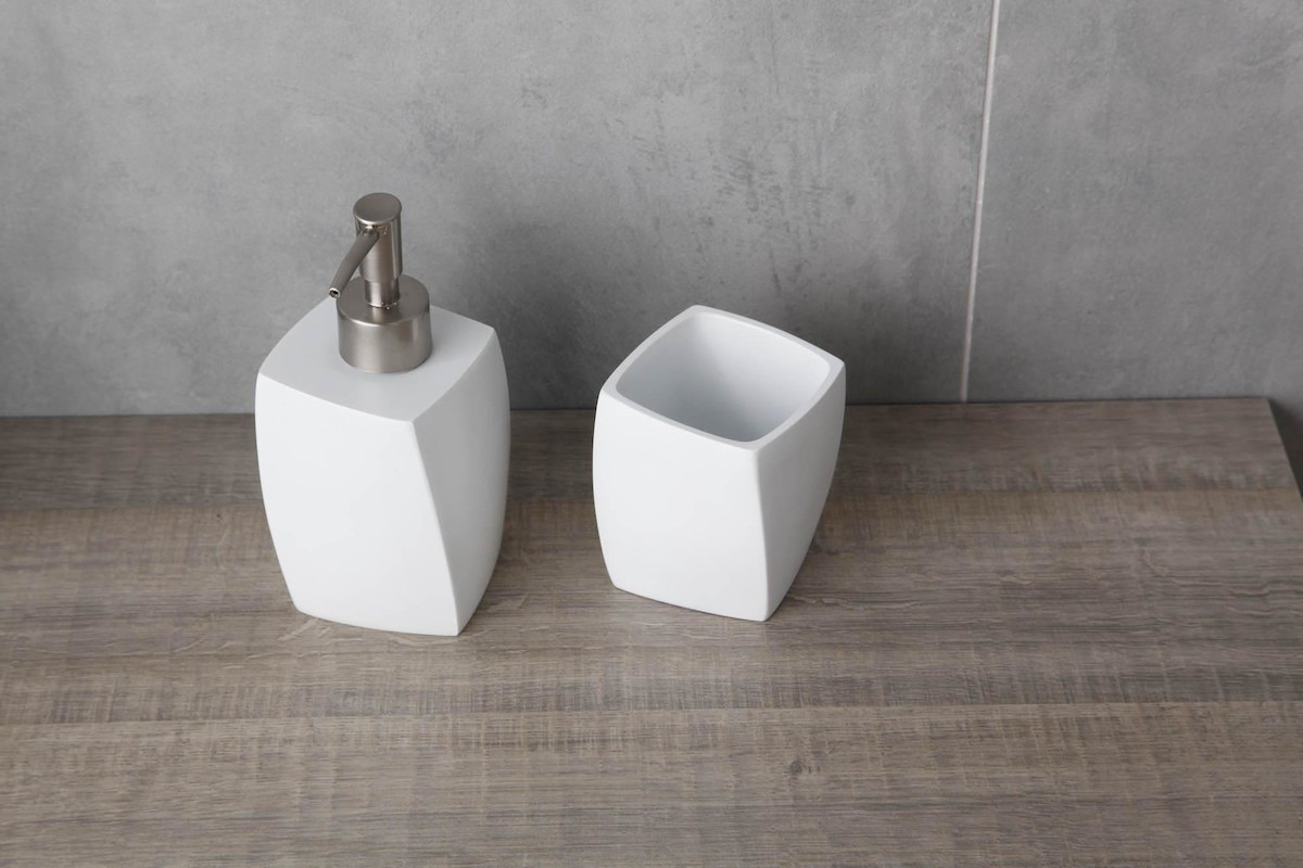 Caractéristiques du Distributeur de savon en polyrésine, Blanc Optima Suza (SUZ99) :