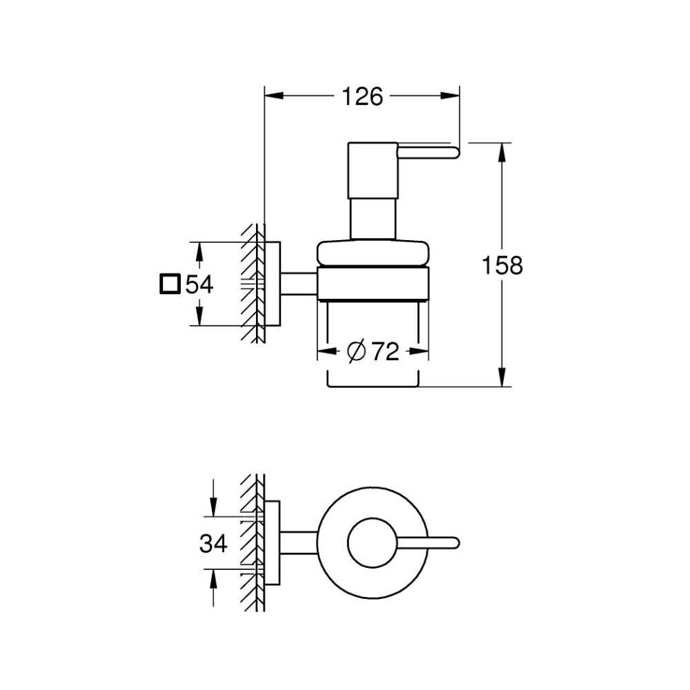 - Peut être vissé au mur (vis et cheville incluses) ou collé (colle GROHE QuickGlue A1 41 127 000 vendue séparément)