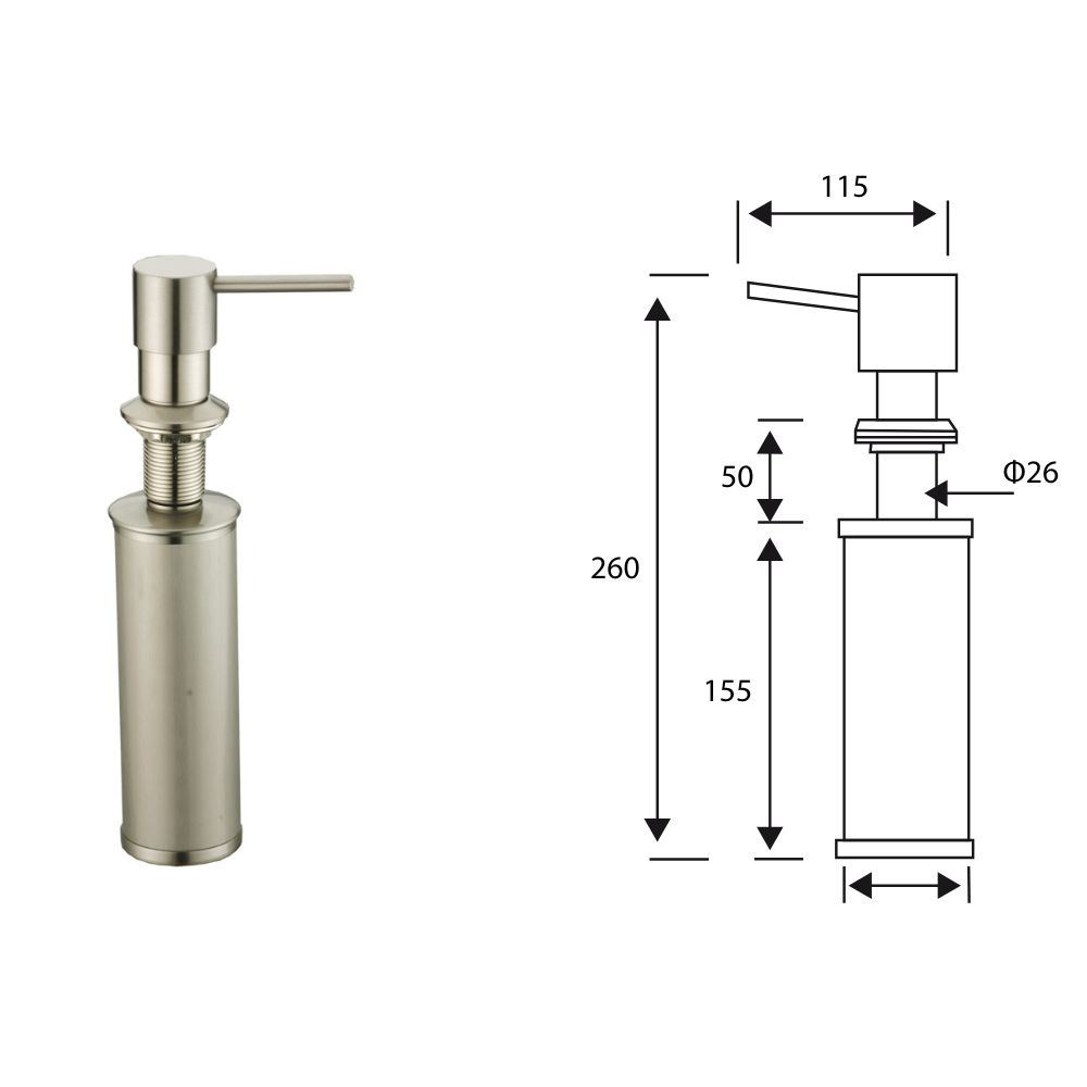 Le Distributeur de savon encastré SIKO d'un volume de 250 Mp est une solution idéale pour toutes les salles de bains et cuisines. Le Distributeur s'installe dans le Dom du Mono du Bassin et peut être utilisé dans l'évier de la cuisine. Il est très facile à remplir par le haut - il suffit de retirer la pompe, de verser le savon liquide et de remettre la pompe en place - il n'est pas nécessaire de Tournevis.