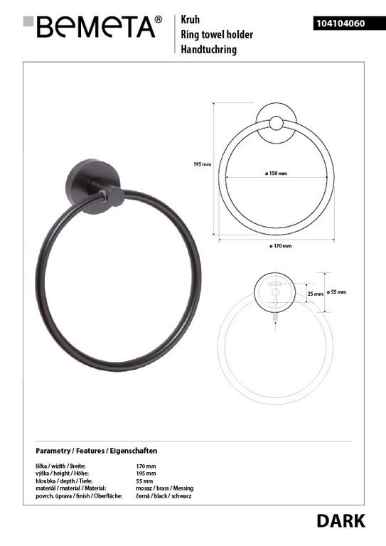 Porte serviette anneau DARK en laiton noir 17x 19,5x 5,5cm / ø 15cm (104104060)