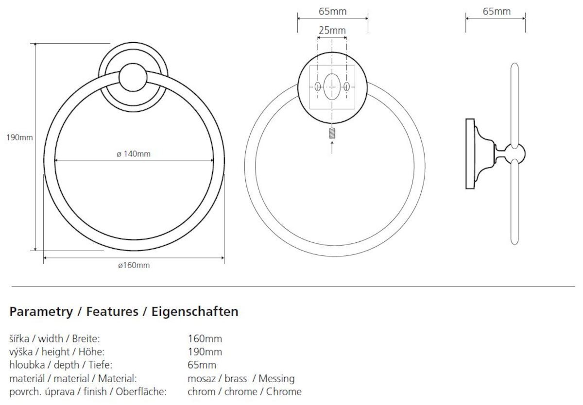 Caractéristiques du porte-serviettes anneau en Laiton, Chrome Bemeta Ricordi (OPTIMARIC60CR) :