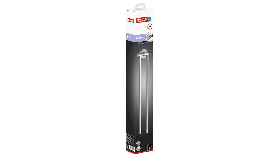 Tesa Moon Porte-serviette 2 barres pivotantes 8,3x5x45,6cm, Métal mat, Chrome, pose facile sans perçage (40303-00000-00)