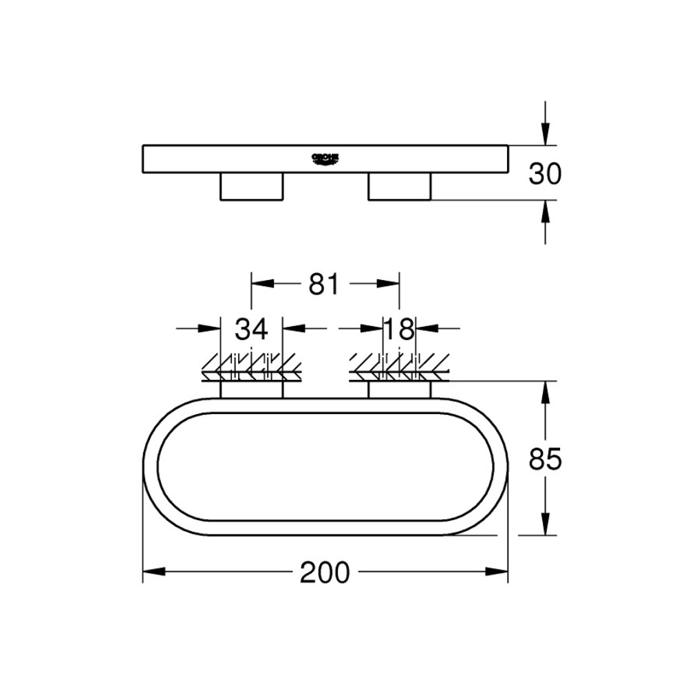 Caractéristiques du porte-serviettes et cadre support tablette/panier, Grohe Selection, chrome (G41035000) :