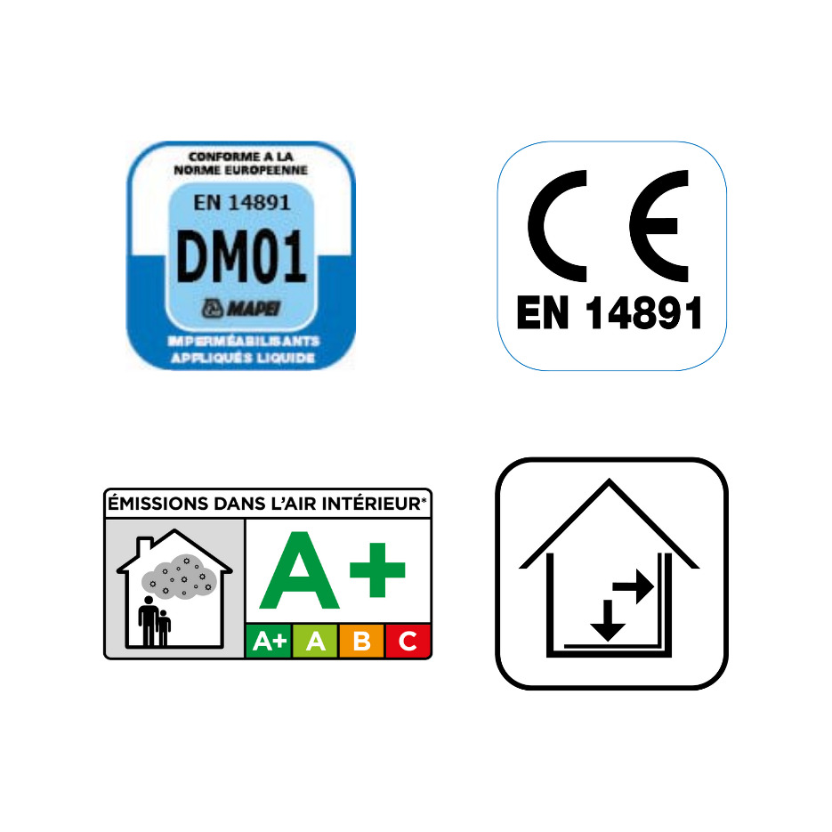 Caractéristiques de la Membrane liquide prête à l'emploi pour étanchéité sous carrelage, séchage rapide, 15kg, Mapei Mapelastic Aquadefense (MAPELASTICAQUA15) :