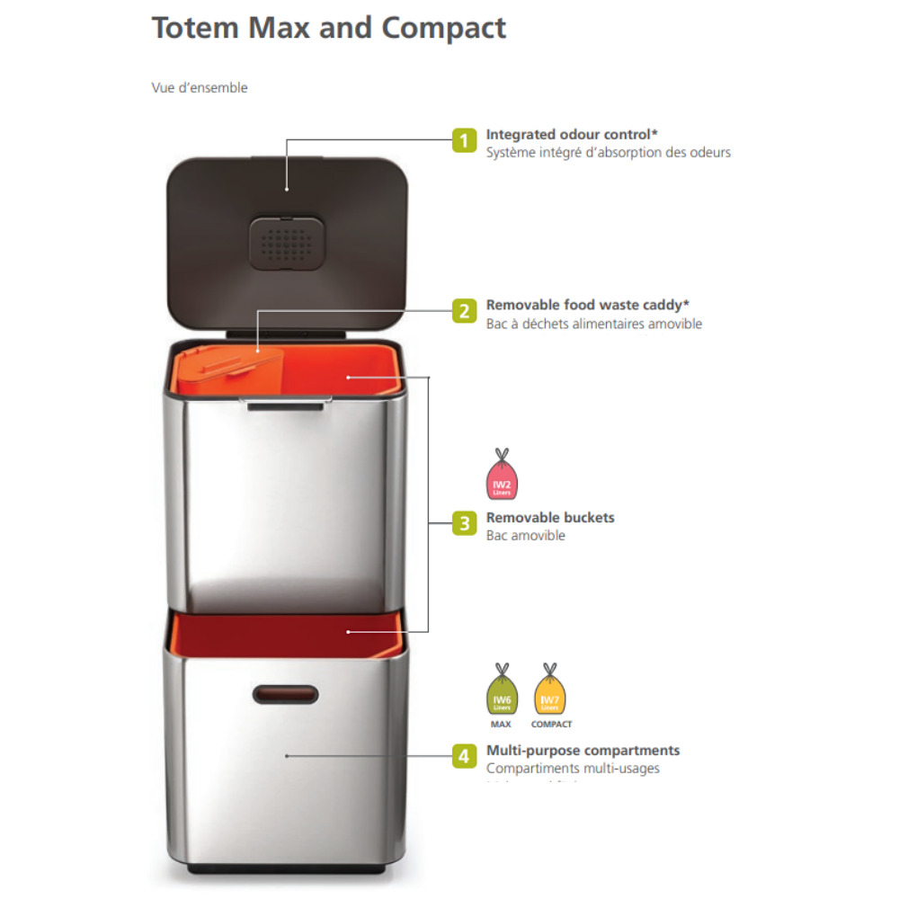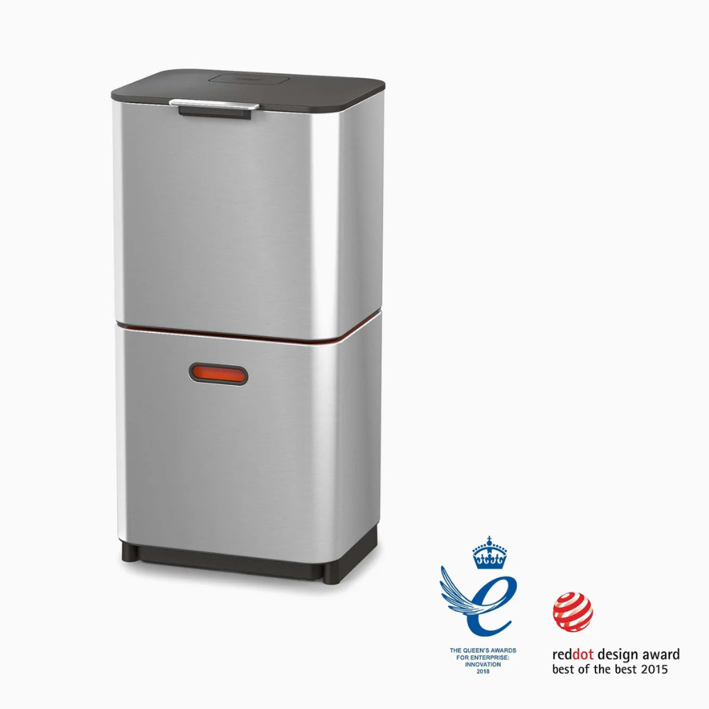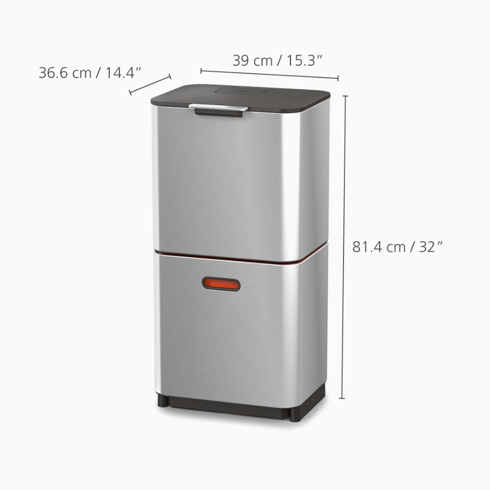 Joseph Joseph Totem Max poubelle avec séparation des déchets et recyclage, 60 L, filtre à charbon actif, acier inoxydable (30060)