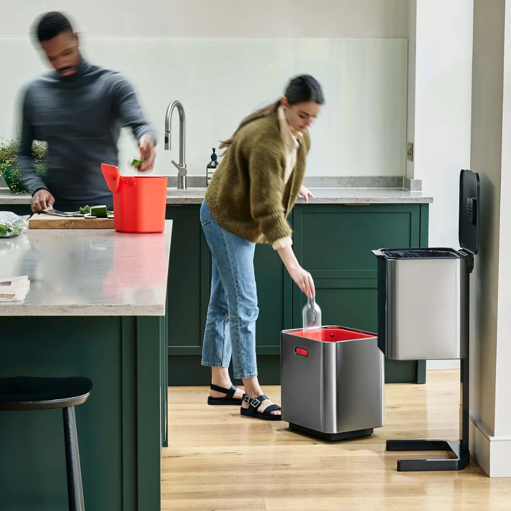 Joseph Joseph réinvente la poubelle moderne qui améliore et optimise la cuisine. Ingénieuse, efficace et vraiment utile pour séparer et recycler les déchets, la Totem Max propose son design primé en acier inoxydable.