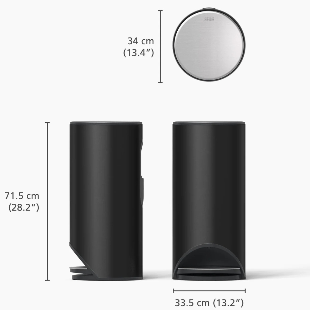 Joseph Joseph Poubelle moderne à pédale 30L ARC Easy-Push, fermeture douce, anti-Trace, seau amovible facile à laver, Noir Mat (30149)